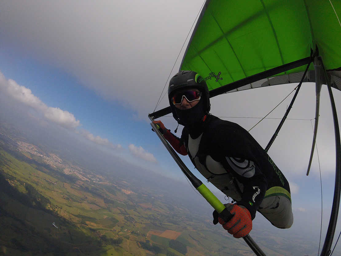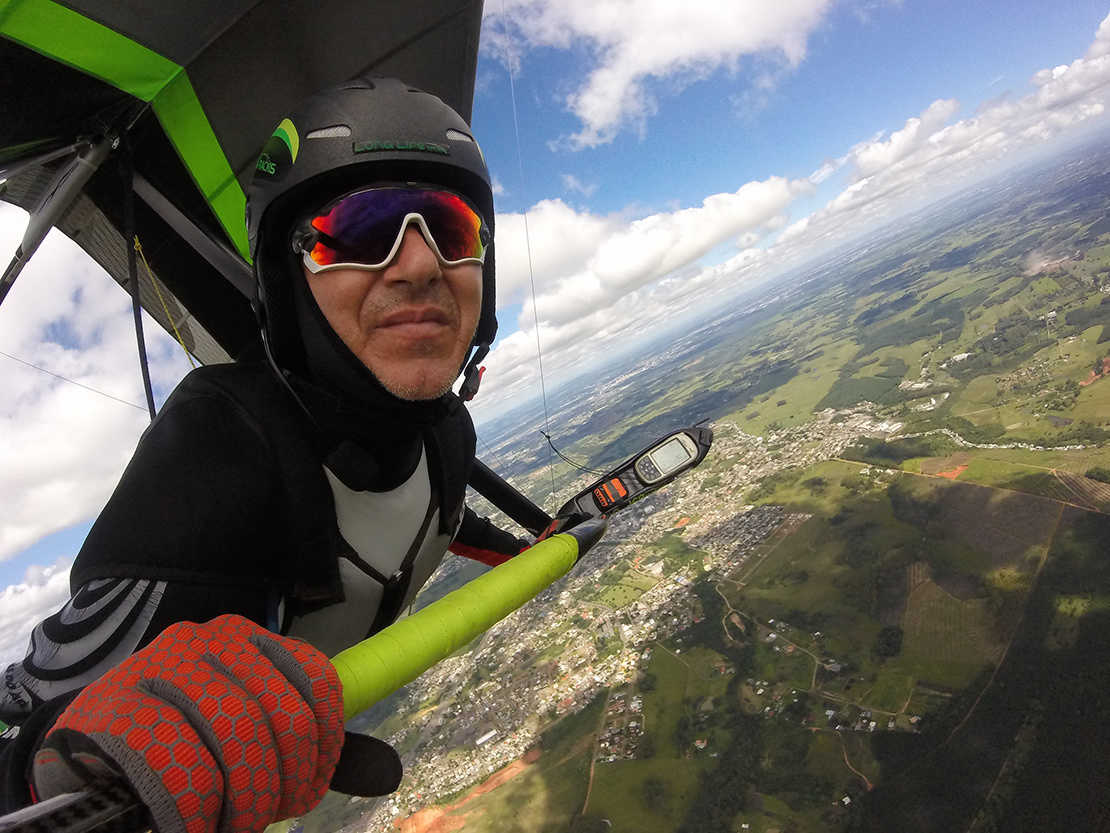 Marcelo Pélio representa a Long Life em diversos eventos. Ele é bi-campeão brasileiro em asa-delta, na categoria free-style.